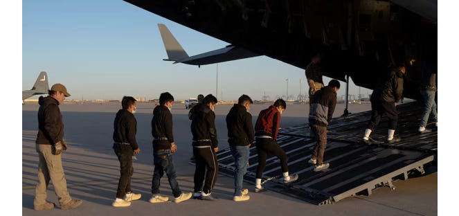 The deal is: self-deport and we’ll fly you anywhere you want. But if you stay, and we catch you, you’ll go someplace you won’t like very much. In leg irons. Not a joke, as the good old Cabbage would say.