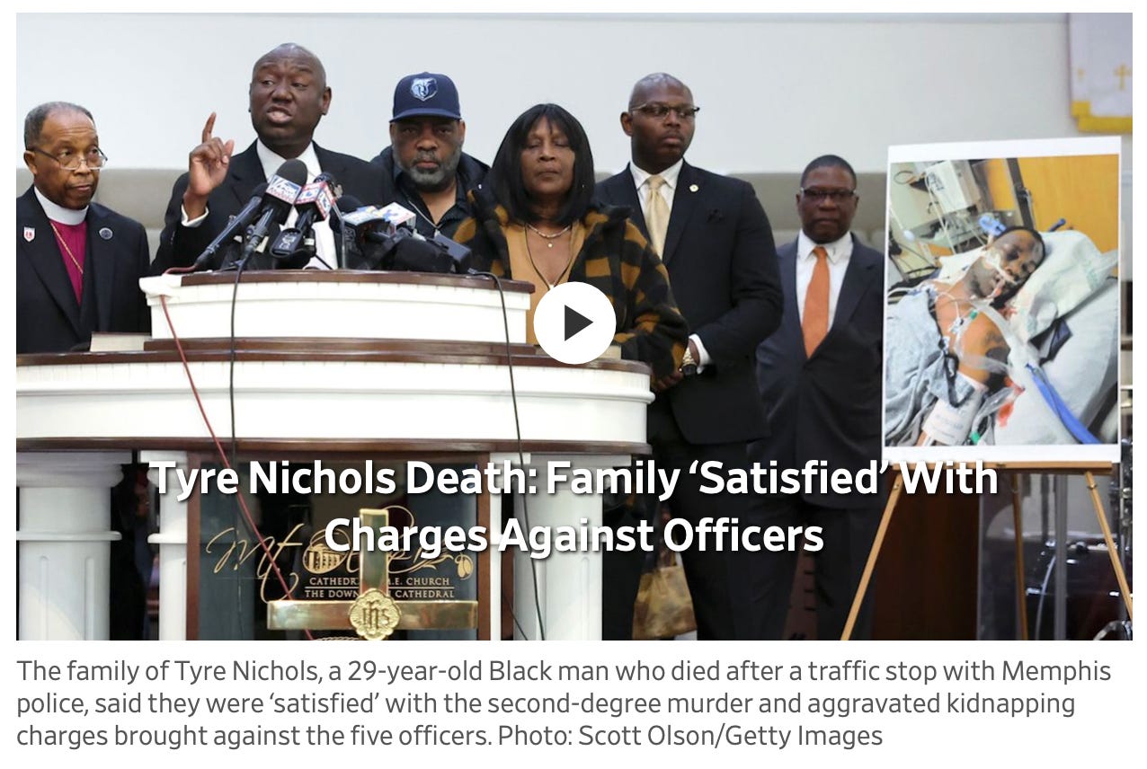 🔥 That’s not all! San Francisco’s DA also released body cam footage of the Paul Pelosi attack along with the 911 recording. I’m not going to link the video; like the Tyre Nichols clip, it’s out there if you want it, but it is violent and disturbing. In my view, the Pelosi video does not fully resolve the questions, and even raises a some new questions, but overall it makes it more likely the two men did not know each other.