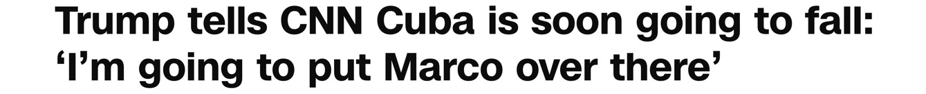Just in the last few weeks, Venezuela and the US have normalized diplomatic relations. Mexico agreed to work with the US military to quash narcoterrorists. Ecuador has invited US special forces to help evict cartels. The Panama canal is back under US control. Cuba —a thorn in the US paw since the Cold War— is on the brink of falling into line. CNN, yesterday: