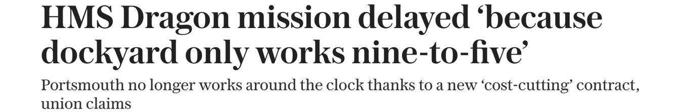 No wonder Trump complains that our NATO allies are letting the US do all the work. Britain, one of NATO’s biggest European spenders, can’t even field a single destroyer in an emergency. But I digress.