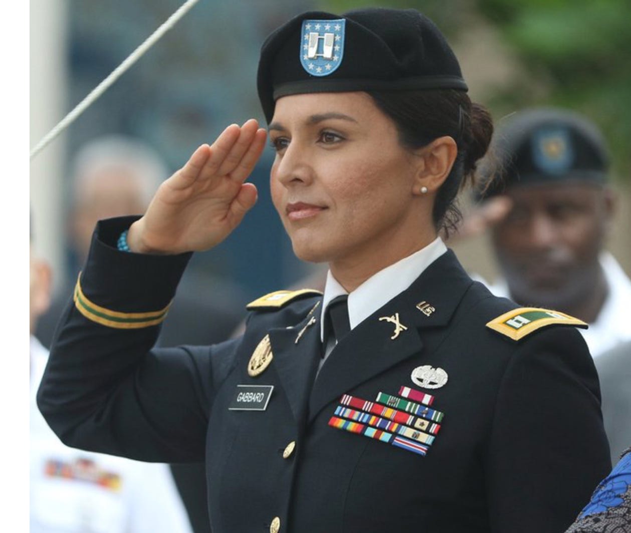 Sigh. You’d think Democrats would be happy. Tulsi is not a Republican. She is a former Democrat and now an independent. And she wasn’t just any random Democrat. She was in leadership. In 2016, she resigned as vice chair of the Democrat National Committee — protesting its oleaginous treatment of socialist Bernie Sanders, and she promptly endorsed Bernie for president.