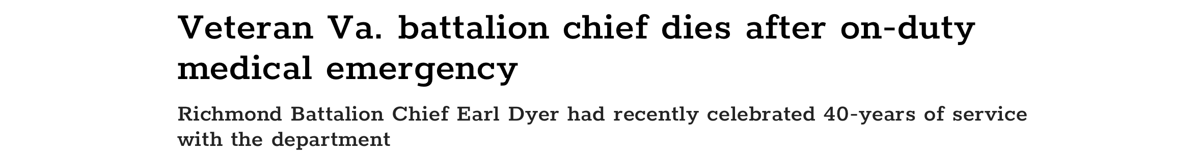 On Friday, Virginia Fire Chief, a veteran and fire chief “sudden” fatal medical emergency at work: