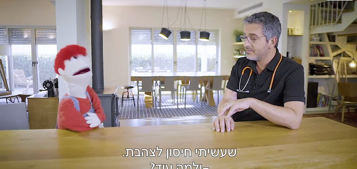 CLIP: Friendly covid puppet explains lockdowns to Yonatan (0:53; Hebrew).
