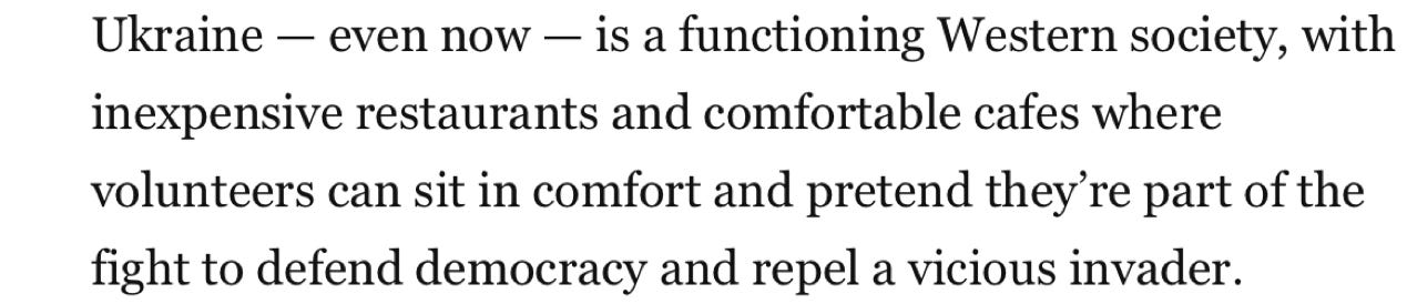 Russia can’t be that vicious an invader, not if volunteers can sit in comfort in inexpensive restaurants and comfortable cafes and live off gullible U.S. donors.