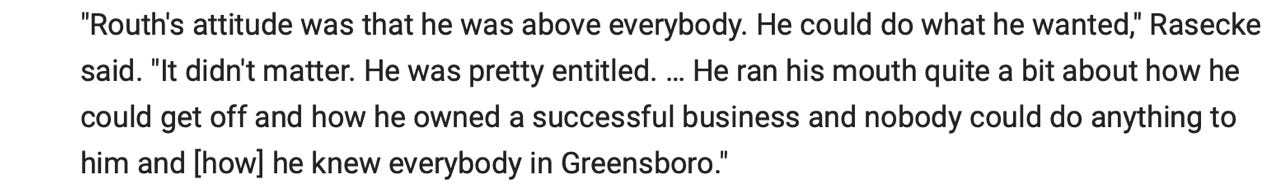 Retired Greensboro Police Department Officer Eric Rasecke, who knew Routh in North Carolina, said Routh believed nobody could touch him: