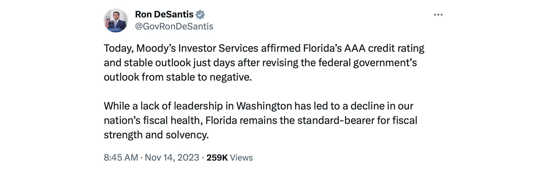 Yesterday, Governor DeSantis rightly bragged about Florida’s top credit rating: