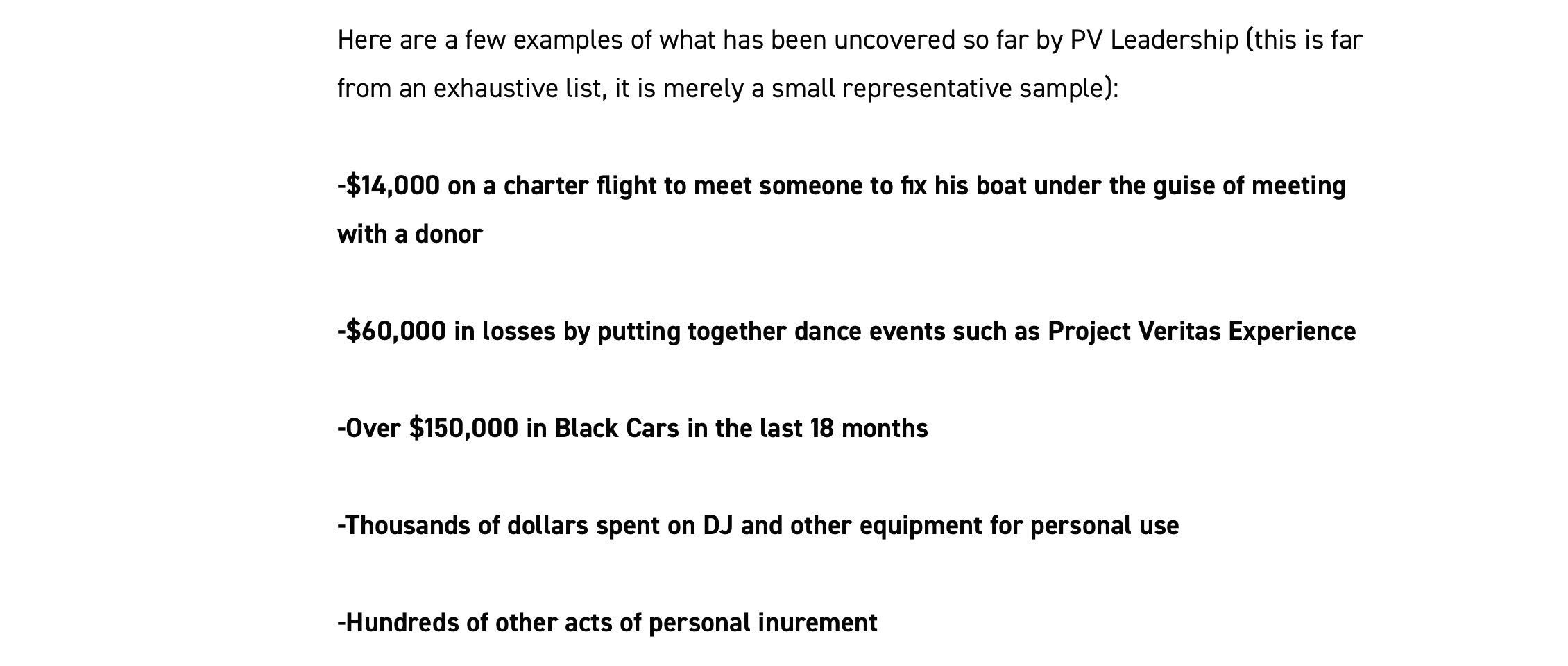 You can’t rely on anything in that list anyway. For one example, the $150,000 in “black cars” refers to what appears to be a car service that PV investigators used instead of taxis or Ubers. The Board is complaining the car service is more expensive that rideshare. It’s like the Board members don’t even understand the most basic things about how the company works.