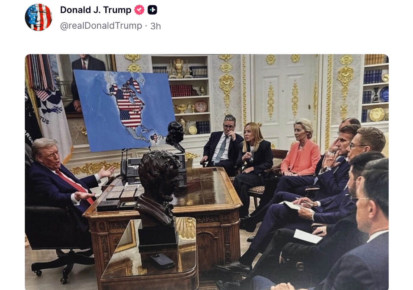 Take a moment to appreciate him. We’ll never again have a master troller like this one for a president. Trump posted this photoshopped image in the wee hours this morning. Note the map and strategically placed Churchill bust. The President didn’t say anything, but then again, does he need to?