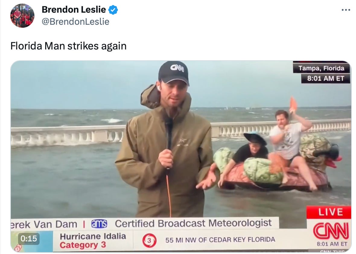 🔥 And, here is my favorite clip from the storm reporting so far. Don’t worry about us Floridians. We’re used to it!
