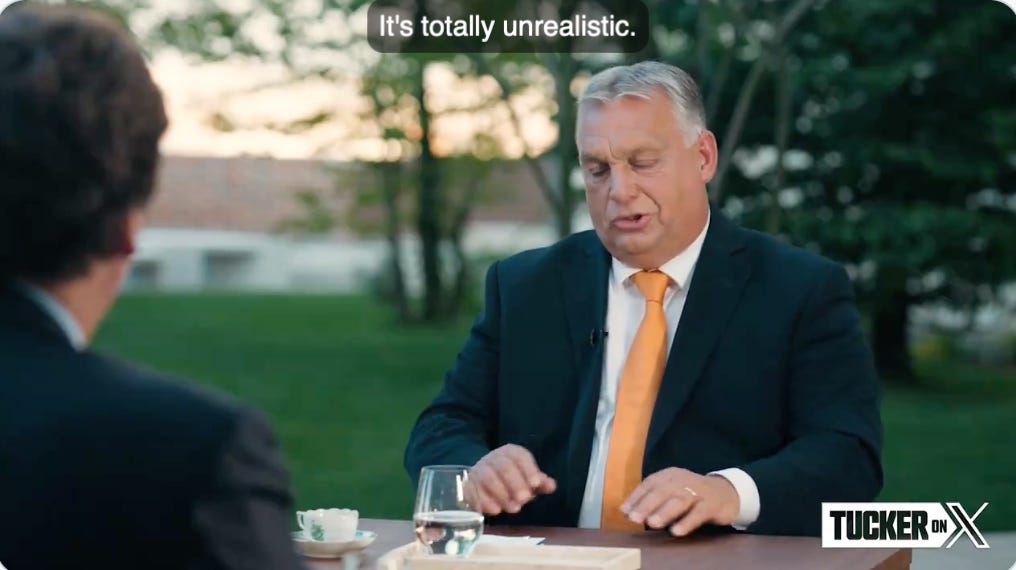 In the meantime, to tide you over, watch Tucker’s 20th episode, where he interviews standout Hungarian Prime Minister Viktor Orban. It’s fantastic. I guarantee you will learn something and you won’t see anything like it on Establishment Media.