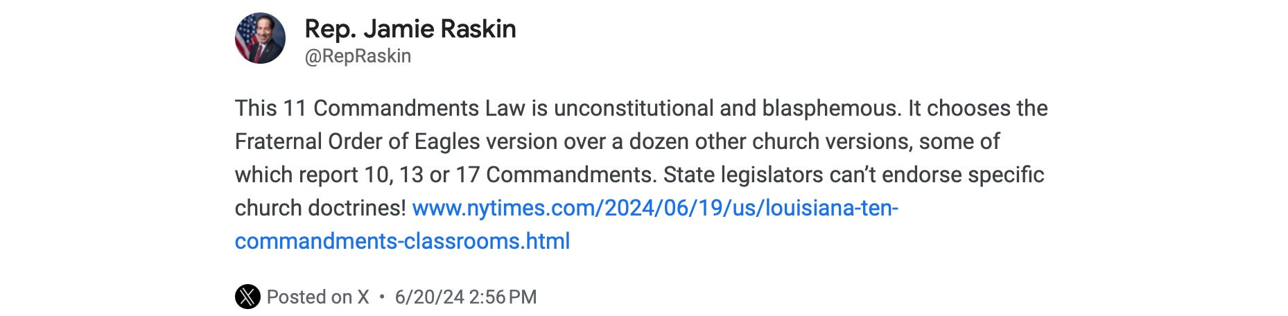 Seeing Im Christian, a Roman Catholic, I was taught the Ten Commandments so I see no problem with them being put in schools in Louisiana. We have a huge demon problem right now starting with the pope, we have to bring God back or we will lose our nations and our souls, thats all Im going to say on that. Have a blessed day C&C peeps.